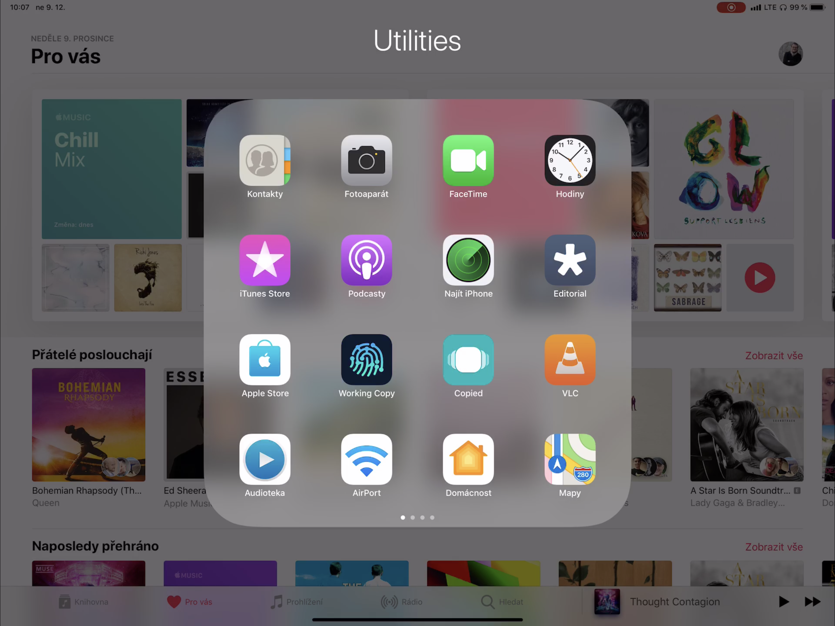 Na iPadu se neobejdu bez Docku, kde mám umístěné všechny nejpoužívanější aplikace. Do Docku můžete umístit i celou složku a tu následně kdykoliv otevřít a spustit libovolnou aplikaci, například pro Split View, tedy rozdělení obrazovky.